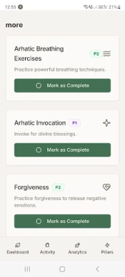 Track, analyze, and elevate your spiritual practice with Arhatic Yoga Logs - the comprehensive app designed specifically for practitioners of MCKS Arhatic Yoga. This powerful tool helps you maintain consistency, monitor progress, and deepen your spiritual journey across all five pillars of practice.